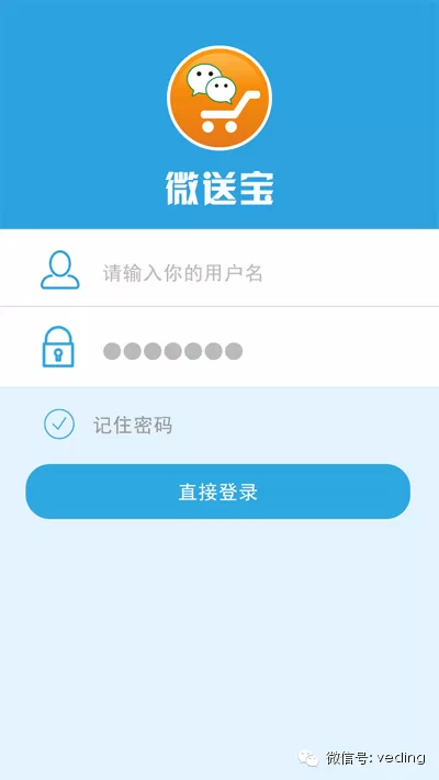 微送宝拥有时尚、简洁的登陆界面。登陆界面时尚简洁,易于操作登陆。既养眼,又实用,此乃配送员必备法器也!如下图所示: