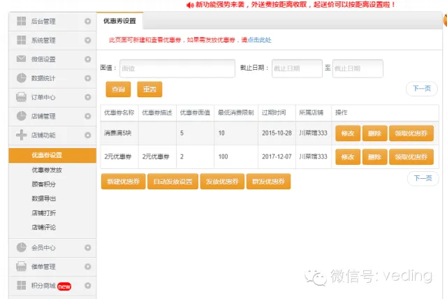 上一条:优惠券支持分享啦! 下一条:微信取号新增叫号通知功能! 免责声明:部分文章信息来源于网络以及网友投稿,本网站只负责对文章进行整理、排版、编辑,是出于传递更多信息之目的,并不意味着赞同其观点或证实其内容的真实性,如本站文章和转稿涉及版权等问题,请作者及时联系本站,我们会尽快处理。 责任申明:官方所有内容、图片如未经过授权,禁止任何形式的采集、镜像,否则后果自负! 标题:新增优惠券领取和首次下单立减金额功能! 地址:https://www.veding.com/static/v2/notice/467.html 相关资讯