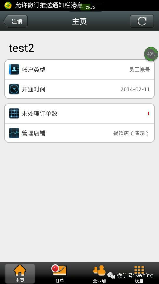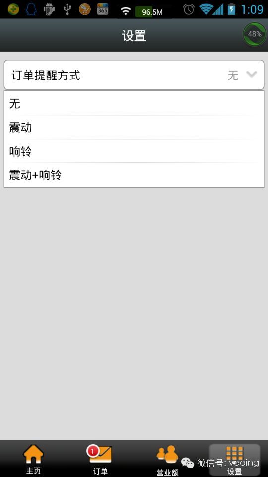 当然了,员工登录手机客户端,同样也可以接收订单。当他管理名下的店铺来了新订单时,手机就会提示响铃或者震动: