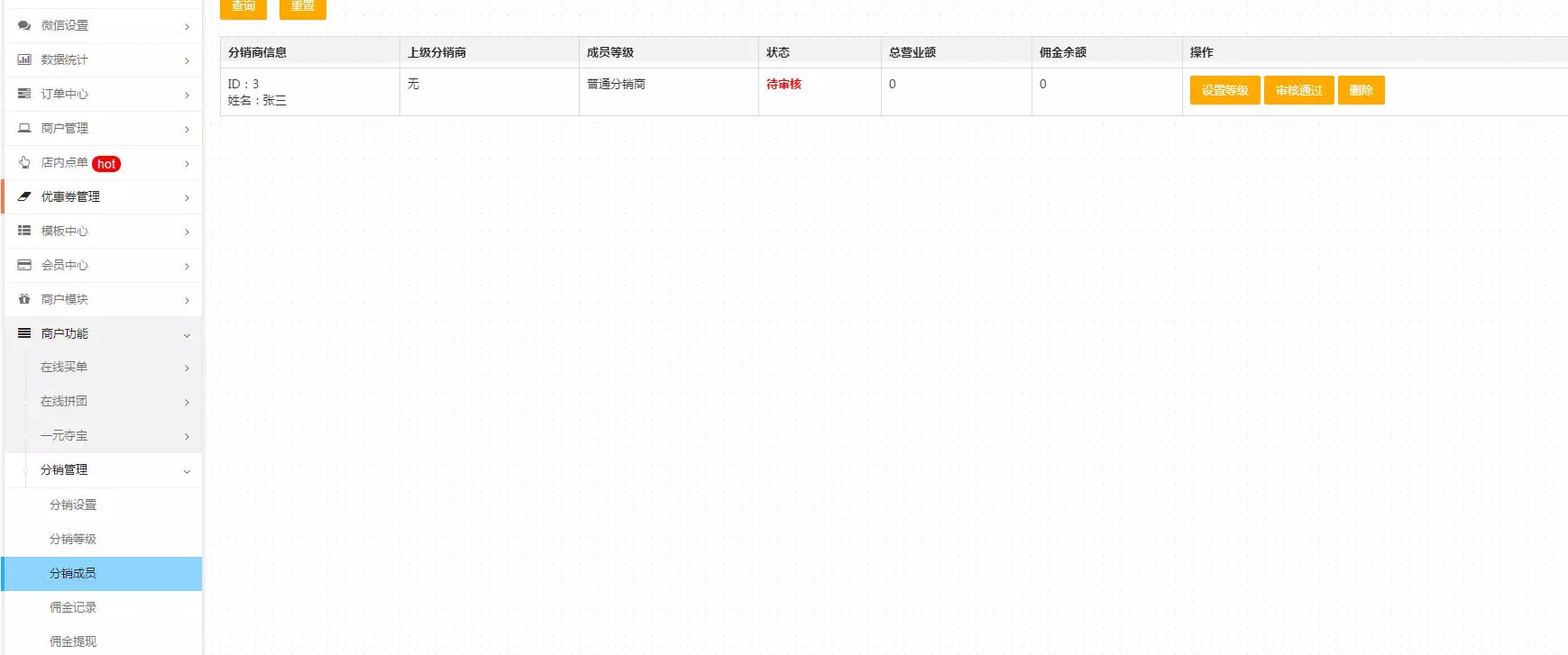 分销商可以 查看佣金,结算佣金。如下图所示: