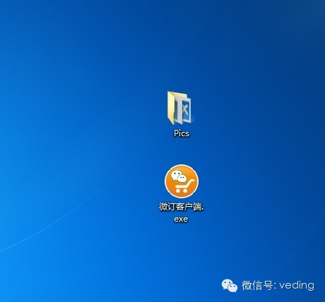2、下载后直接放在电脑的桌面上,即可看到微订pc客户端,当然,放在任何地方都可以。不需要安装,双击客户端图标即可打开, 如图所示: