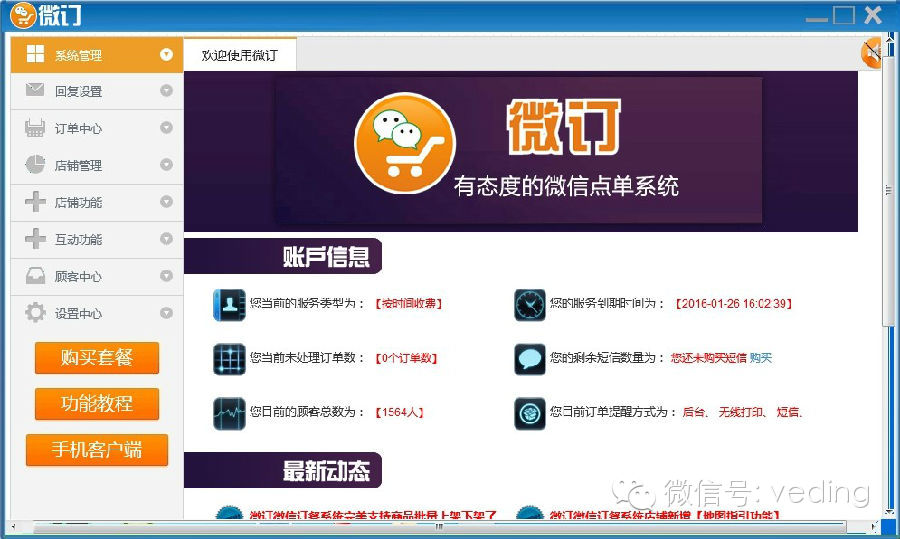 我们推出微订PC客户端的目的是让每一位商家得到方便,能够简单快捷的操作我们的系统。微订一直在做一个有态度的微信点单系统,感谢所有商家对微订系统的大力支持,我们将保持不断更新,持续升级。 不多说了,赶紧去下载吧!PS:如遇到显示不出图片,请清理浏览器缓存! 免责声明:部分文章信息来源于网络以及网友投稿,本网站只负责对文章进行整理、排版、编辑,是出于传递更多信息之目的,并不意味着赞同其观点或证实其内容的真实性,如本站文章和转稿涉及版权等问题,请作者及时联系本站,我们会尽快处理。 责任申明:官方所有内容、图片如未经过授权,禁止任何形式的采集、镜像,否则后果自负! 标题:微订首发,PC客户端震撼上线! 地址:https://www.veding.com/static/v2/notice/68.html 相关资讯