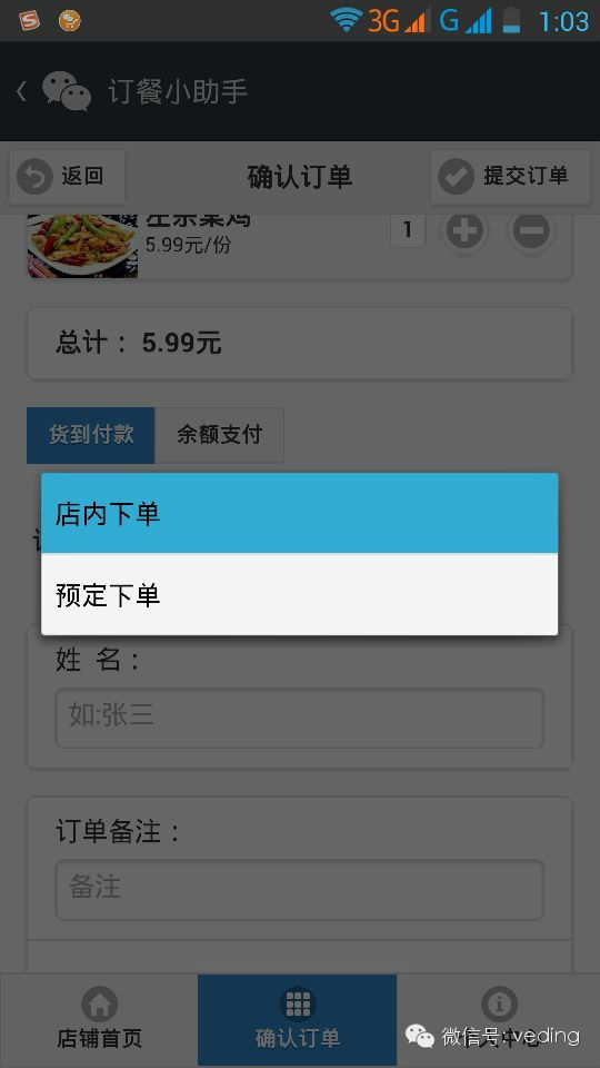 | 外送下单系列功能升级 admin 发表于 2014-02-26 01:08:49 这次小编带来了“外送下单”新功能,外送下单可以开启和关闭了,这对于店内点单的商家来说是个不错的选择,除了开启和关闭功能还支持“自定义提示信息”,大大的减少了无效订单的提交。 1、商家登陆到微订系统后台“下单设置”模块,可以自定义开启和关闭“外送下单”,如图所示: 关闭外送下单,则在手机端是不作显示的,只显示店内下单和预定下单(如果所有下单功能都关闭,则提示无法下单)
