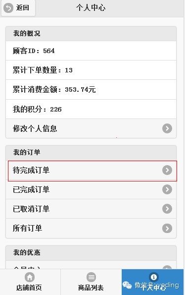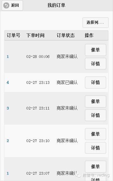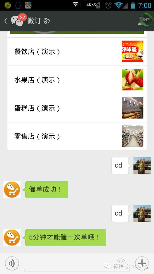 3、商家开启催单之后,客户通过手机个人中心,“待完成订单”中点击订单“催单”按钮进行催单。如图所示: 4、还有更好的是,客户在微信端回复【CD】即可进行回复催单哦,是不是觉得又更方便了呢?