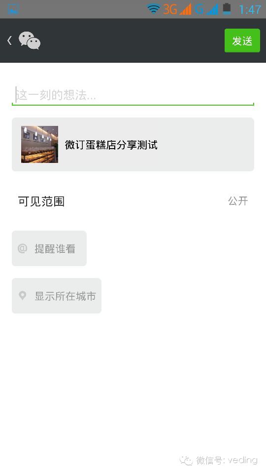 营销利器:支持店铺分享功能及分享统计 admin 发表于 2014-03-15 05:20:24 相信大家都知道微信有个朋友圈,将产品分享到朋友圈,是一种极其有效的推广手段,然而微订现已实现此分享功能了,加快了推广微信店铺的步伐,可以算得上是营销神器啊。本来店铺链接是不能分享的,因为微信的限制,必须通过用户回复消息的形式才能进入店铺,要不然将获取不到用户的信息,所以,每个人的店铺链接都是不一样的。