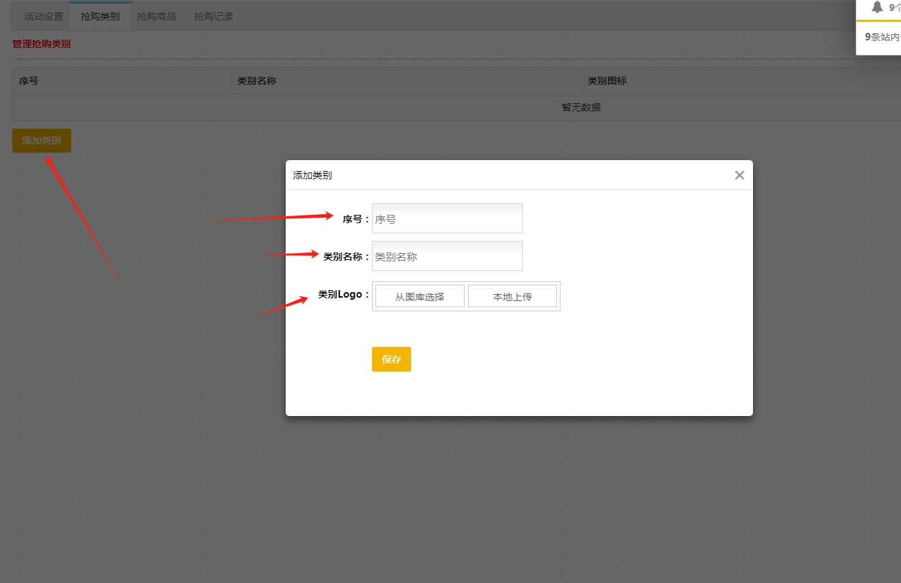 补充说明:序号越下排在最前,类别例如:肉类,水果类,生活用品等不限制,LOGO可以上传自己的或添加网络图片。